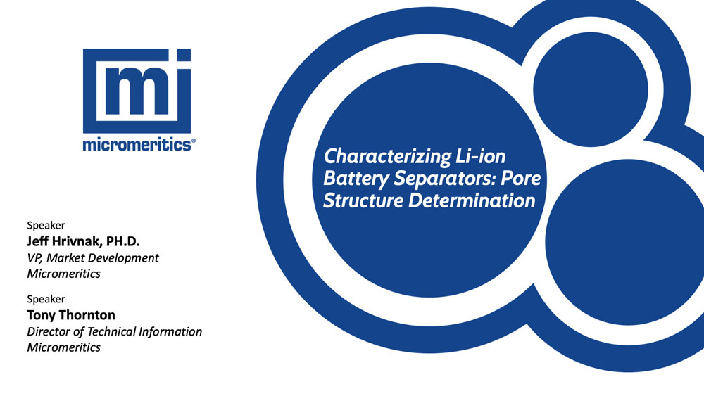 The AutoPore V Series utilizes the Mercury Porosimetry analysis technique, based on the intrusion of mercury into a porous structure under stringently controlled pressures. Besides offering speed, accuracy, and a wide measurement range, mercury porosimetry permits you to calculate numerous sample properties such as pore size distributions, total pore volume, total pore surface area, median pore diameter and sample densities (bulk and skeletal). This webinar will describe how the AutoPore V can be used to characterized separators which are critical to the safety and reliability of li-on batteries.