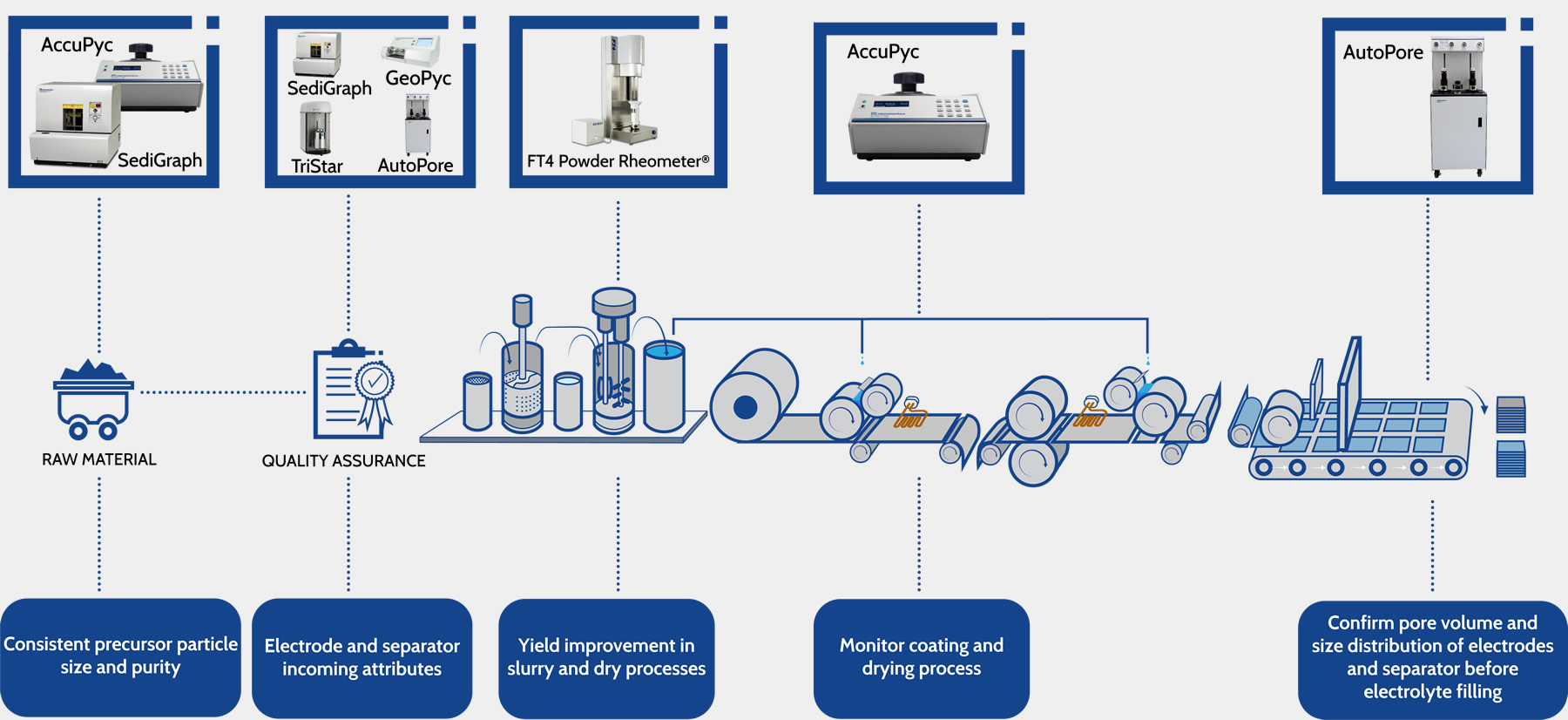 在Micromeritics,我们拥有从原材料前体到最终电池电池生产的所有阶段的仪器。